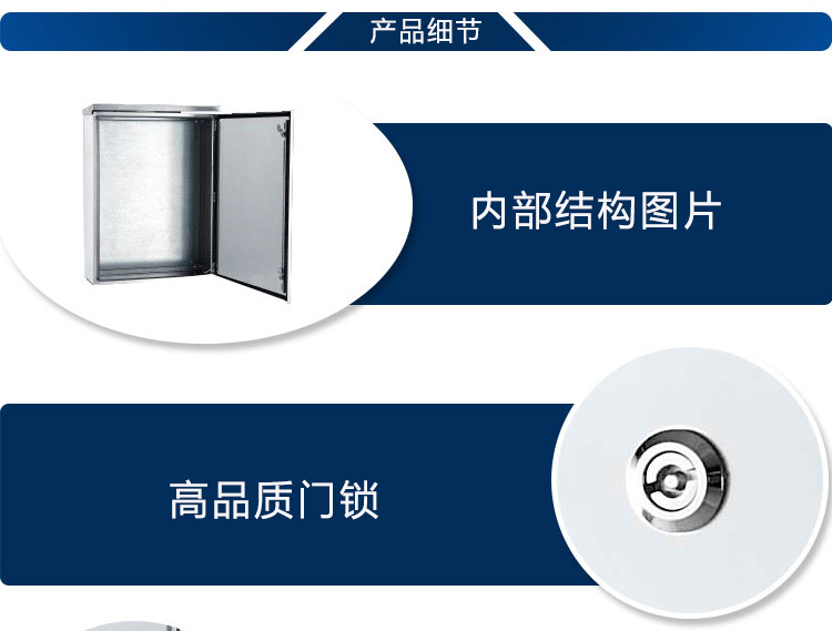 1、明裝不銹鋼配電箱采用304不銹鋼板材及優(yōu)質(zhì)配件制造。南域為您展示電箱,配電箱,低壓配電箱的內(nèi)部結(jié)構(gòu),采用優(yōu)質(zhì)配件制造。 | ![]() |